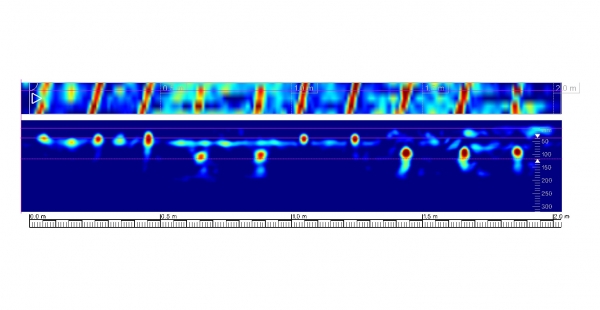 電磁誘導法は、かぶりが比較的浅い場所では非常に有効で、浅ければ浅いほうが分解能も良く、確実な探査および測定がし易くなります。