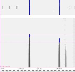 鉄筋位置とかぶりの測定が同時にでき、コンクリート表面の湿潤状態や品質等による影響を受けにくいため、電磁波レーダ法と比較して高い精度の測定を行うことができます。